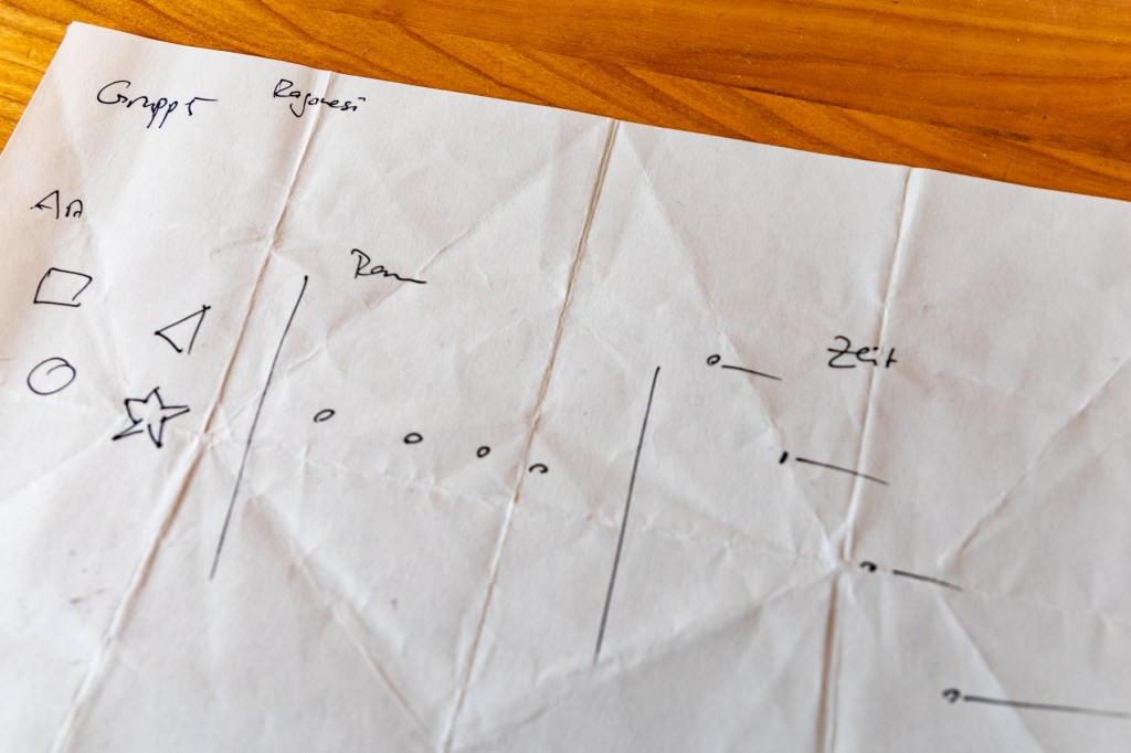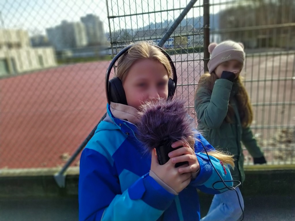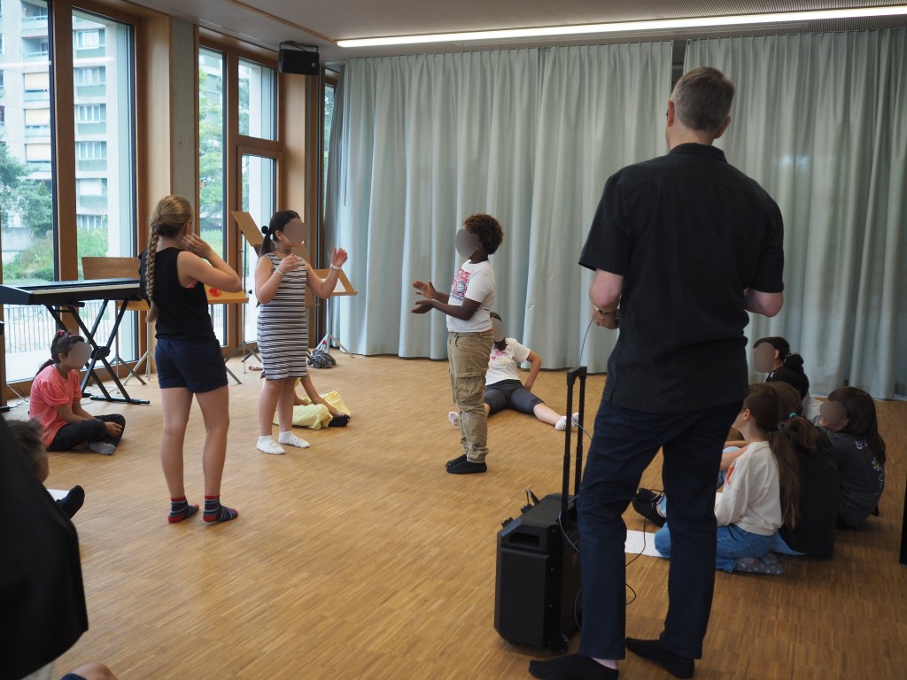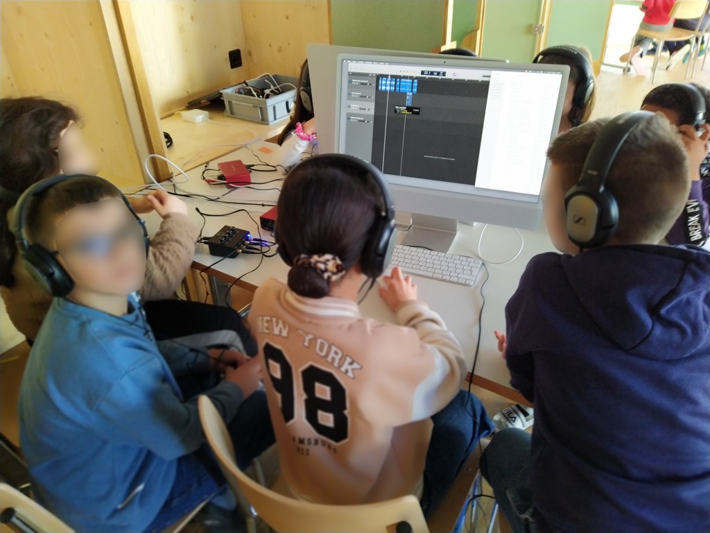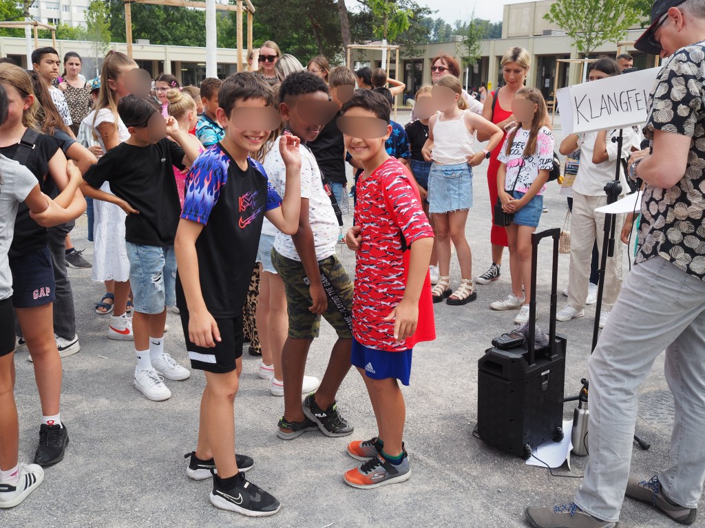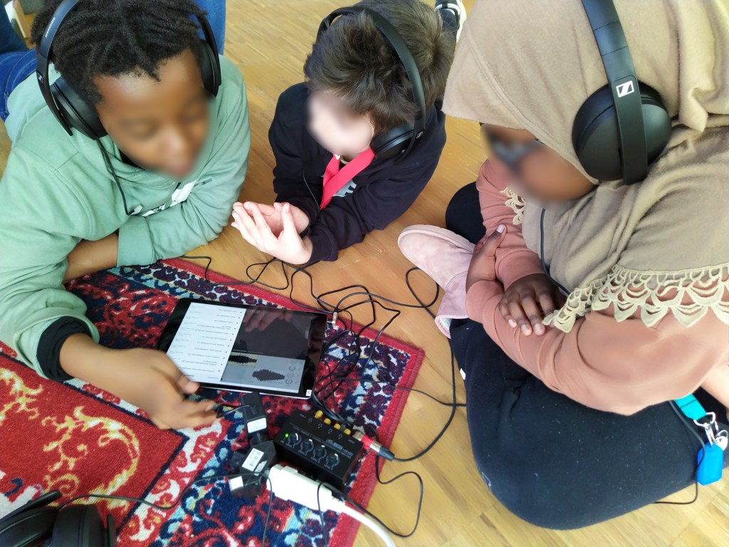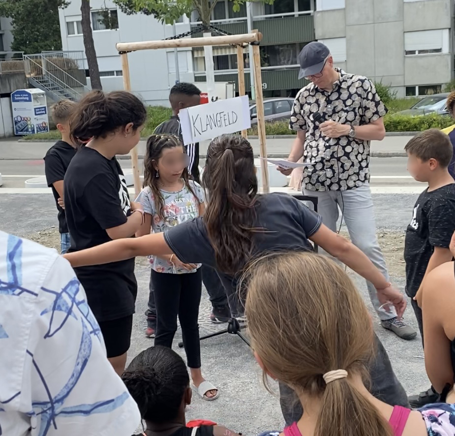 Jan Schacher worked with the pupils from September 2022 to June 2023. He sparked the children’s interest in sound by exploring the school and its surroundings, walking through the woods and streets of Bümpliz as well as the school yard and playgrounds while listening, making sounds and recording themselves in their environment. Once engaged in the invisible sphere of the school the children were then initiated into easy, open access sound editing software to edit and design a track from the recordings, telling their own story about the school. This sonic exploration was further developed through text scores and rhythmic drawings, that invited the children into improvisations, to add a physical performance to the field recording work done earlier.